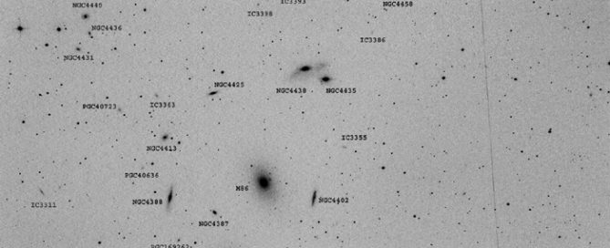 Markarian Chain – The heart of the Virgo ClusterI converted my image to B&W & included a negative for ease of seeing the fainter galaxies, with ID’s. Some are as faint as 18th magnitude, and I did not have time to label them all…but The Virgo Clust
