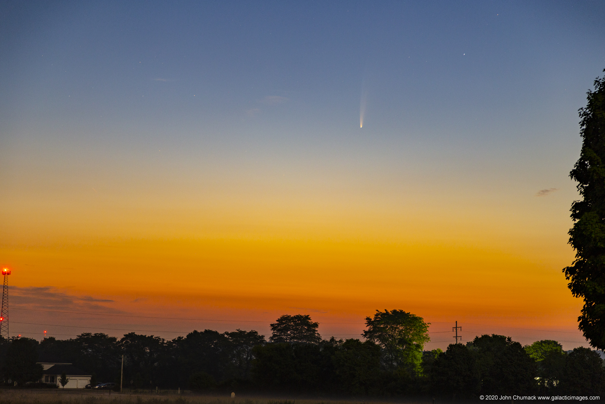 A Beautiful Comet in the Morning sky!!! Comet NEOWISE on 07-08-2020… warning because of how low it is on the Horizon your view may be blocked by trees or other structures..so go find a very low Northeastern Horizon away from the city lights..although it is visible to the human eye, its just barely visible around here, once it cleared the fog on the horizon. Comet NEOWISE looks so much better in Binoculars or small telescope. Even regular camera lens on DSLR cameras can capture it..with exposures as short as 1 to 5 seconds. The color just before Sunrise really makes the Comet Photo, but I found you only have a 30 minute window of color before the comet gets washed out by the brightening sky. I will be posting several images this week, I will include exposure setting for the different lens sizes I used…so you all can go out and try to capture it yourselves!!!…I used my Fujinon 10×70 binoculars to view it, and it was beautiful to look at…but once its high enough off the horizon you can see it through your Camera viewfinder. But you don’t have much time before dawn’s light gets too bright to wash it out..I captured these from Enon, Ohio, went to visit & shoot with my buddy Glenn who found us a good spot in his neck of the woods using google maps. All shots are with my Canon 6D DSLR, most exposures were well under 10 seconds..depends on your Lens, ISO value & Fstop used.