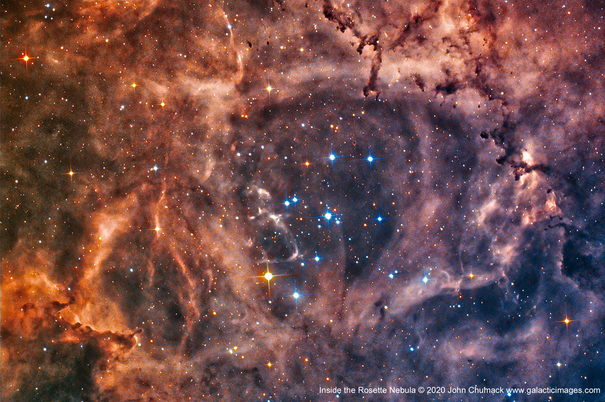 Here is my Close-up View Inside The Rosette Nebula (also known as Caldwell 49) is a large spherical H II region (circular in appearance) located near one end of a giant molecular cloud in the Monoceros region of the Milky Way Galaxy.