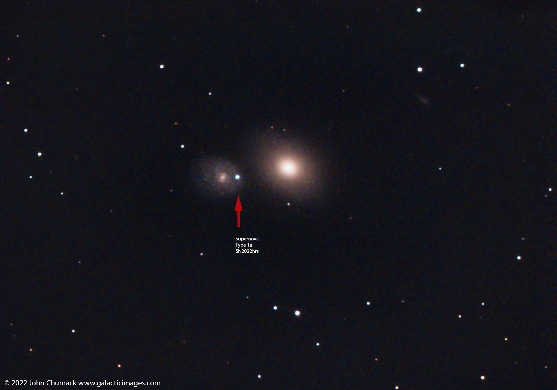 NGC4647 Spiral galaxy with type 1a Supernova(sn2022hrs) and its neighbor Elliptical Galaxy M60, The Supernova is now shining at Magnitude 12.5,