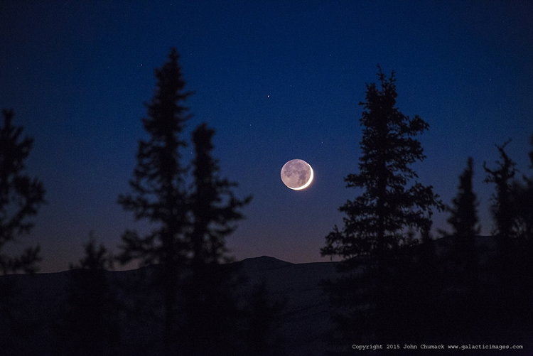 Okay, here is a little something for all you Moon Lovers out there!!!The Thin Waxing Crescent Moon with Earth-shine and the Star above the Moon is 5th magnitude star 110 Omicron Piscium, the moon was moving through the Constellation of Pisces just before setting below the Mountain top on 03-21-2015, Sorry Mars had already set by the time I grabbed this shot..Earth-shine is the normally unlit portion of the moon, in this case Earth is reflecting light and illuminating the backside or non Sunlit portion of the Moon, you can even make out the Maria or Features on the Earth-shine portion of the Moon.