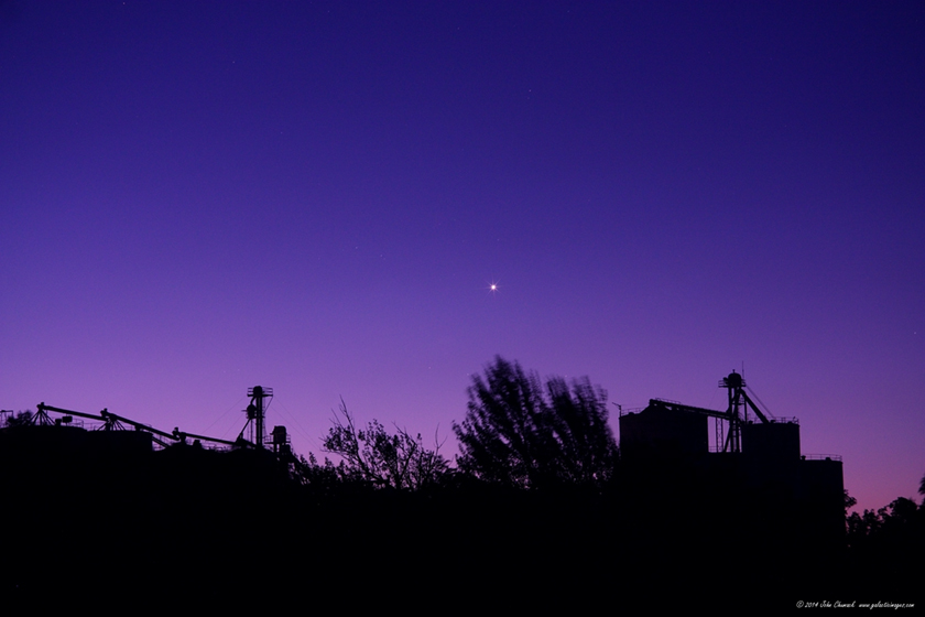 Here is a Shot of The Planet Venus rising in the East at Dawn above the Large Grain Silos in Dexter, Iowa! The wind was howling a bit as the storm just blew through a few hours earlier, but at least the skies were clear for a while each night!!!! Go out in the early morning sky to see The Planet Venus right now!